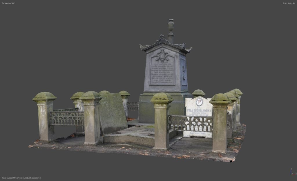 Z radością informujemy, że Fundacja Stare Powązki zakończyła tegoroczny etap prac związanych z cyfrowym odwzorowaniem zabytkowych obiektów naszej nekropolii. Efekty skanowania 3D – kolejne modele opracowane w ramach projektu „Upowszechnienia wiedzy z zakresu historii i historii sztuki w oparciu o dziedzictwo historyczne Cmentarza Stare Powązki” – są już dostępne na stronie: fundacja.stare-powazki.pl/skany-3d.