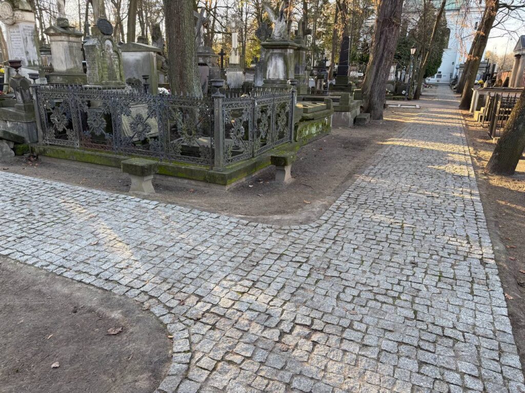Zakończenie tegorocznego zakresu prac przy remoncie historycznej nawierzchni Starych Powązek
