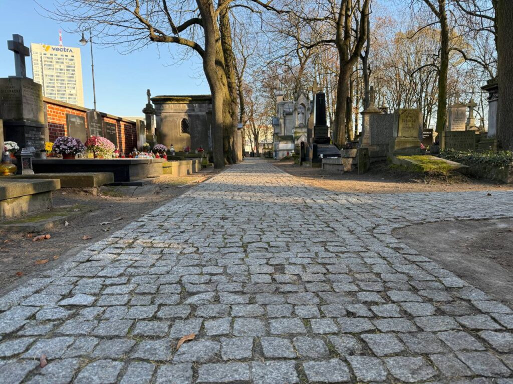 Fundacja Stare Powązki informuje o zakończeniu tegorocznych prac konserwatorskich związanych z remontem historycznej nawierzchni w najstarszej części Starych Powązek. W ramach realizowanego etapu wykonano szereg działań mających na celu odtworzenie i zabezpieczenie zabytkowej struktury alejek, przy jednoczesnym poszanowaniu ich oryginalnego charakteru.
