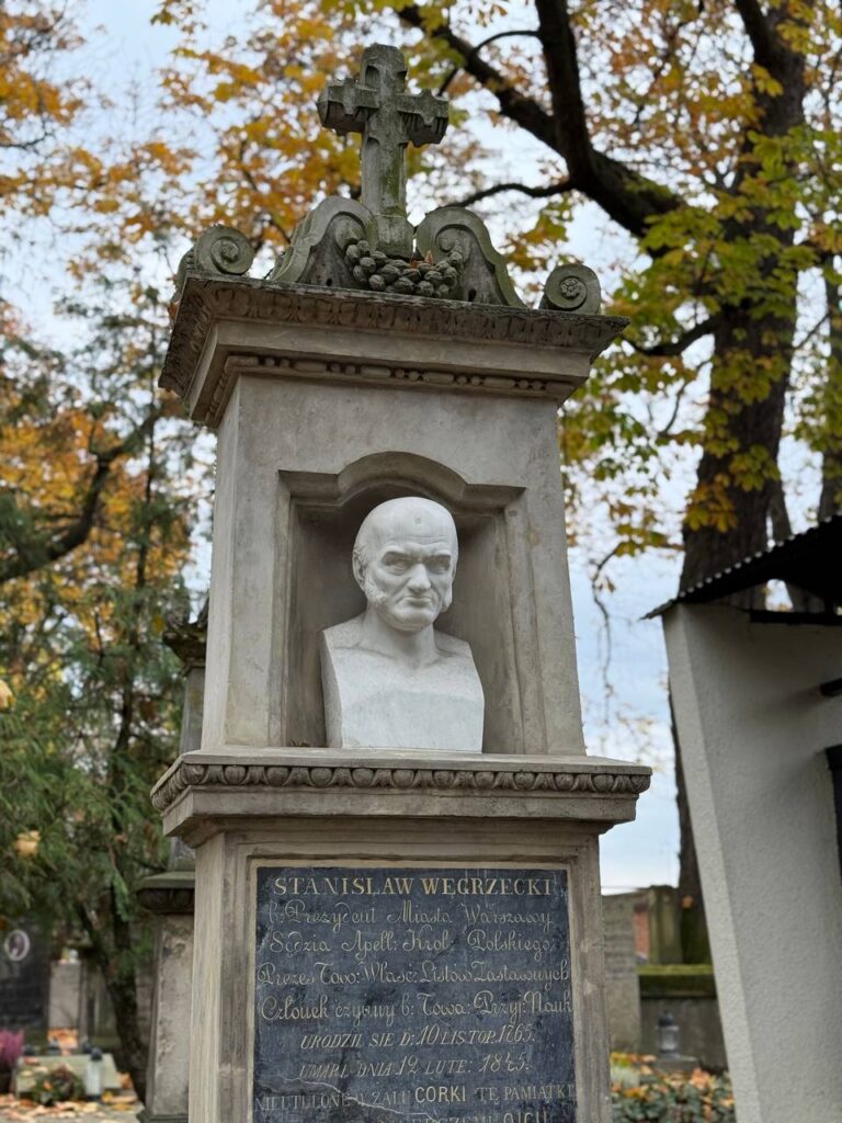 Nagrobek, wykonany przez wybitnego rzeźbiarza, ucznia Thorvaldsena – Jakuba Tatarkiewicza.